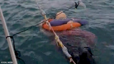 ووثق الصياد هذه اللحظة بمقطع فيديو فريد، يرصد ظهور المرأة حتى خروجها من البحر سالمة.
