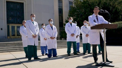 وكان الرئيس ترمب، الذي يخضع للعلاج في مركز وولتر ريد الطبي العسكري في بيثيسدا بضاحية واشنطن، أعلن أنه يشعر "بتحسن كبير"، واعداً بـ"العودة قريباً".وقال ترمب في مقطع فيديو نشر على "تويتر" مساء السبت: ""جئت إلى هنا. لم أكن على ما يرام"، مضيفاً: "أشعر بتحسن كبير الآن، نحن نعمل بجد كي أشفى تماماً. أعتقد أنني سأعود قريباً وأتطلع إلى إنهاء الحملة الانتخابية بالطريقة التي بدأتها بها".
