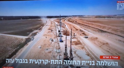وقالت (القناة 13) الإسرائيلية: "بعد ثلاث سنوات، اكتمل تقريباً بناء الجدار التحت أرضي على حدود قطاع غزة، والذي من المفترض أن يمنع التسلل إلى إسرائيل عبر الأنفاق".