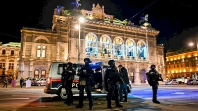 والمشتبه به الرئيسي في الهجوم الذي خلف أربعة قتلى و22 مصابا هو مواطن عمره 20 عاما ويحمل جنسية النمسا ومقدونيا الشمالية، وقتلته الشرطة بالرصاص في مكان الحادث. وداهم رجال الشرطة 18 منزلا في إطار تحقيقاتهم.