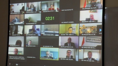 وترأس وفد فلسطين في الاجتماعات وزيرة الصحة د. مي الكيلة، والمراقب الدائم لدى الأمم المتحدة وباقي المنظمات الدولية، سفير فلسطين لدى سويسرا إبراهيم خريشة وذلك عبر تقنيات الاتصال عن بعد.