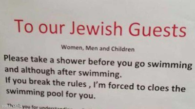 رام الله - صدى نيوز - أثارت لافتة وضعها أحد الفنادق السويسرية الصغيرة جدلا اضطر الفندق للاعتذار ونفي تهمة "معاداة السامية" التي اطلقت ضده على مواقع التواصل، وذلك بعد موجة غضب من اللافتة التي استهدفت الحفاظ على نظافة حمام السباحة بالفندق، لكنها أثارت غضب اليهود لاستهدافهم بشكل تمييزي.