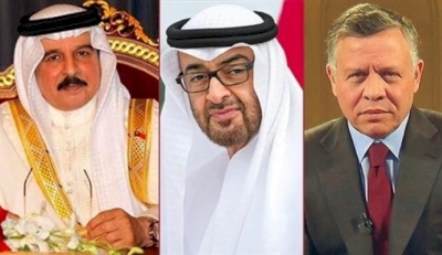 صدى نيوز - بحث عاهلا الأردن، الملك عبد الله الثاني، والبحرين حمد بن عيسى، وولي عهد أبوظبي محمد بن زايد، في العاصمة الإماراتية أبوظبي، اليوم الأربعاء، العلاقات الاستراتيجية بين بلدانهم، وآخر التطورات الإقليمية والدولية، وفي مقدمتها القضية الفلسطينية.