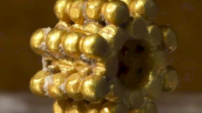 والتحفة على شكل زهرة مصنوعة من حبيبات ذهبية صغيرة، احتفظت بمظهرها ولم تؤثر بها الأزمنة الطويلة، ولذلك اعتقد عالم آثار عرضت عليه أنها حديثة، لكنه أدرك لاحقا أنها صنعت قبل نحو 3 آلاف عام.