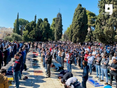 وتوافد منذ ساعات الصباح الباكر أبناء شعبنا من مختلف بلدات القدس وأراضي الـ48، إلى مصليات وباحات الأقصى لأداء صلاة الجمعة، رغم التضييقات والتقييدات التي يفرضها الاحتلال على الحواجز وأبواب الأقصى.