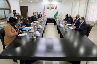صدى نيوز - التقى صباح اليوم الاثنين عضو اللجنة المركزية لحركة فتح ورئيس الهيئة العامة للشؤون المدنية الوزير حسين الشيخ ومدير المخابرات العامة الفلسطينية اللواء ماجد فرج والمستشار مجدي الخالدي، مع الوفد الأمريكي برئاسة المبعوث الأمريكي للشؤون الفلسطينية والإسرائيلية السيد هادي عمرو في مدينة رام الله .