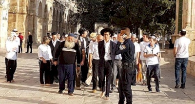 وتجاوز عدد المستوطنين الذين اقتحموا حتى الساعة التاسعة والنصف صباحا، ثلاثمائة مستوطن.