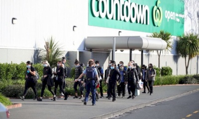 وكانت الشرطة تلاحق الرجل عندما دخل سوبر ماركت كونت داون في مركز نيو لين التجاري في أوكلاند. وقالت إنها اعتقدت أنه دخل للتسوق لكنه التقط سكينا من أرفف المعروضات وبدأ في طعن الناس.