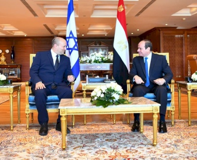 ونشرت الرئاسة المصرية على الإنترنت، صورا للقاء السيسي وبينيت بمنتجع شرم الشيخ السياحي، شمال شرقي مصر.